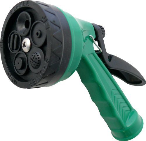 reen 5 position Super Click Wheel Spray Hose Nozzle. Choose from shower, mist, jet, flat or soaker settings. Auto shut off and lock position handle. Heavy duty Green plastic, high quality, light and easy to use. Our easy to use click wheel design lets you switch spray patterns on the fly. Our most popular hose nozzle.