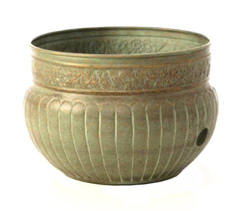 Our attractive, decorative Egyptian hose pot will look great on your lawn or patio to conceal your garden hoses but still keep them neat and within easy reach for use. Our hose pot holds 175 feet of 5/8-inch garden hose, it has a hose winder stem in the center. The Egyptian Hose Pot is made of copper plated steel, hand rubbed patina then finished with a clear coat. Includes drainage in the base. A beautiful and functional addition to any home.