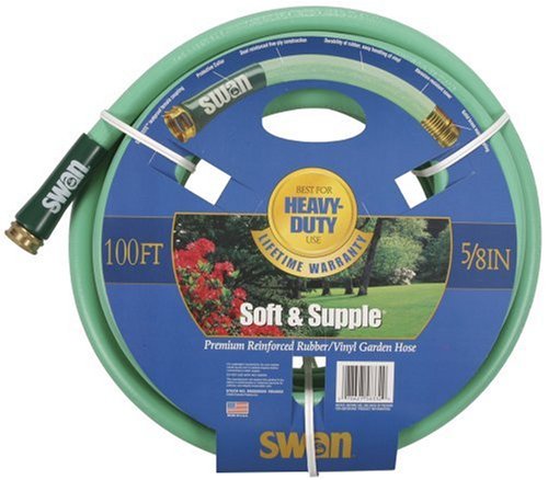 The Colorite/Swan 5/8-inch-by-100-foot soft and supple garden hose provides heavy duty flexibility. This garden hose is soft-textured, abrasion-resistant, kink-resistant and dual-reinforced. Featuring Seal-Tite, leaf-proof coupling, this garden hose comes with an unconditional lifetime warranty.